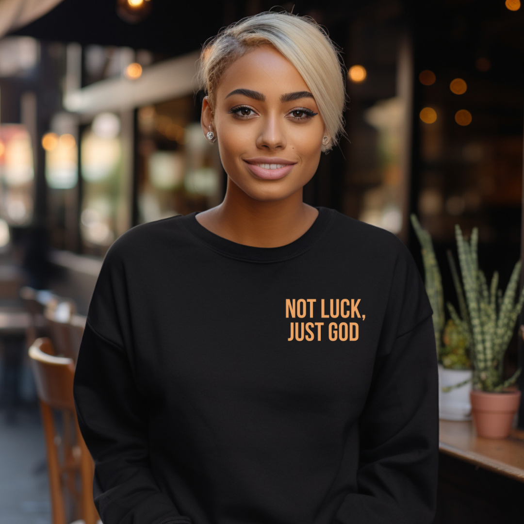 When they see you they will know it's 100% God and 0% luck! Grab our new Not Luck, Just God sweatshirt, available in sizes XS-XXL.